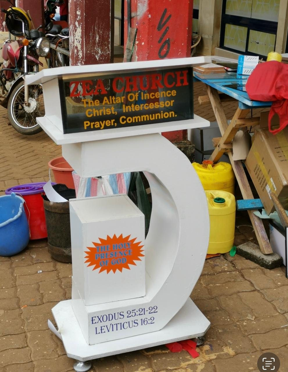 A decorative church podium used for ministry and worship services.